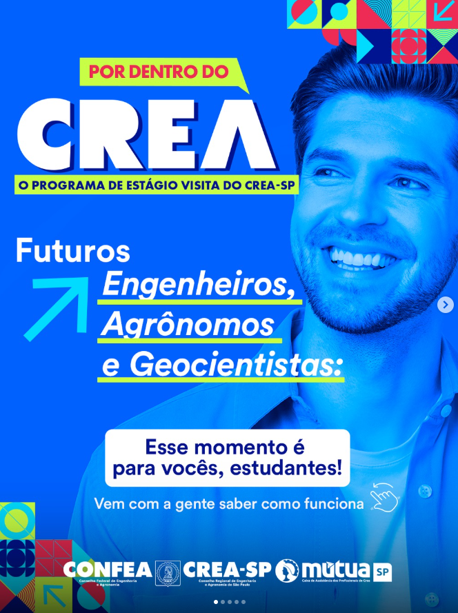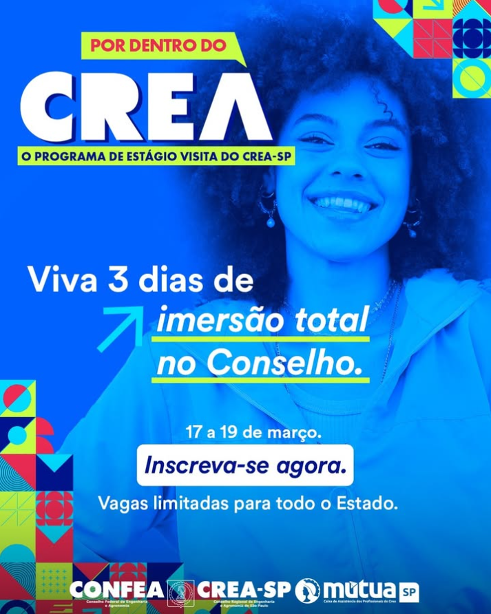 Se liga nessa oportunidade: De 17 a 19 de março, estudantes de Engenharia, Agronomia e Geociências de todo o Estado poderão ser selecionados para participar do nosso Programa de Estágio Visita. Uma imersão real no funcionamento do maior Conselho Profissional da América Latina.