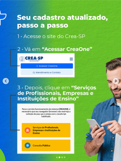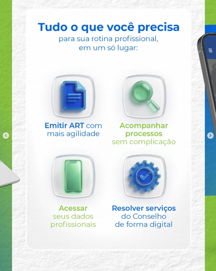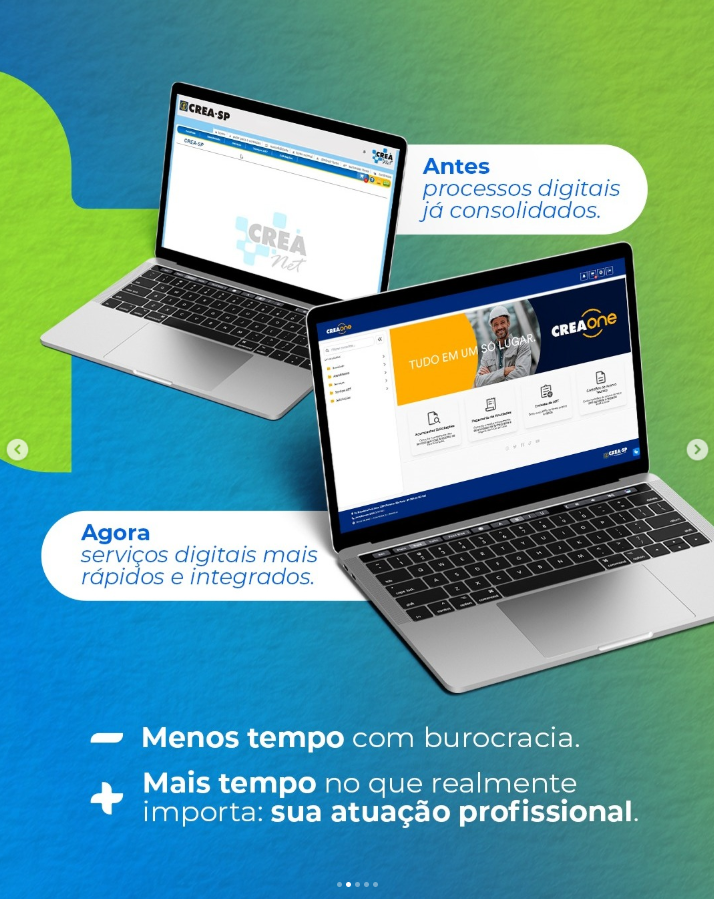 O Crea-SP está em um cenário de evolução constante, aprimorando seus serviços digitais para acompanhar as necessidades reais dos profissionais da área tecnológica. O CreaOne foi pensado para trazer mais eficiência e agilidade, com uma navegação simplificada e conectada ao seu dia a dia.